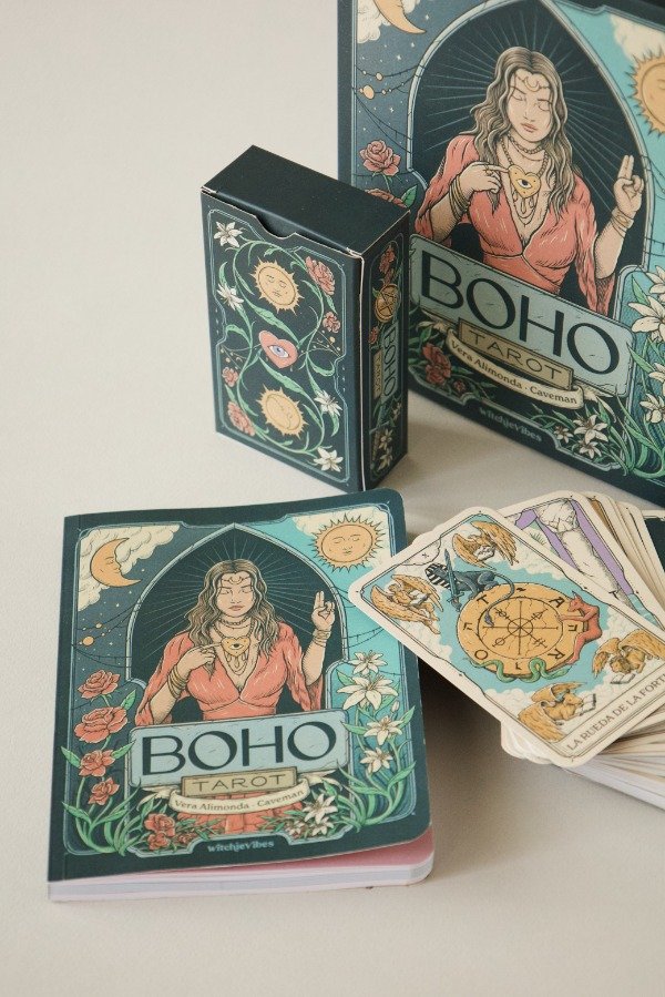Este mazo no solo respeta la estructura simbólica del Rider Waite Smith, sino que actualiza sus arquetipos para hacerlos más diversos, contemporáneos y humanos. La bohemia como estética y como forma de habitar el mundo impregna cada trazo, color y textura.