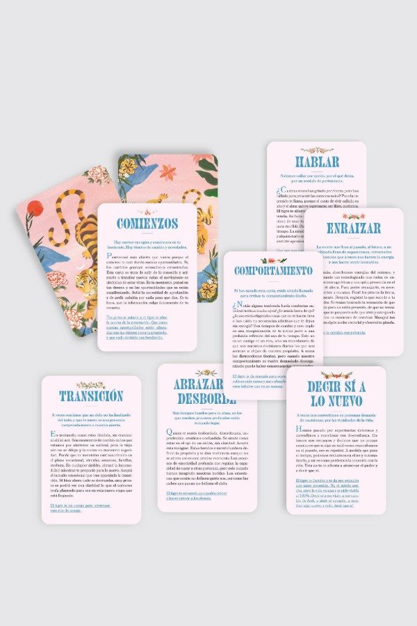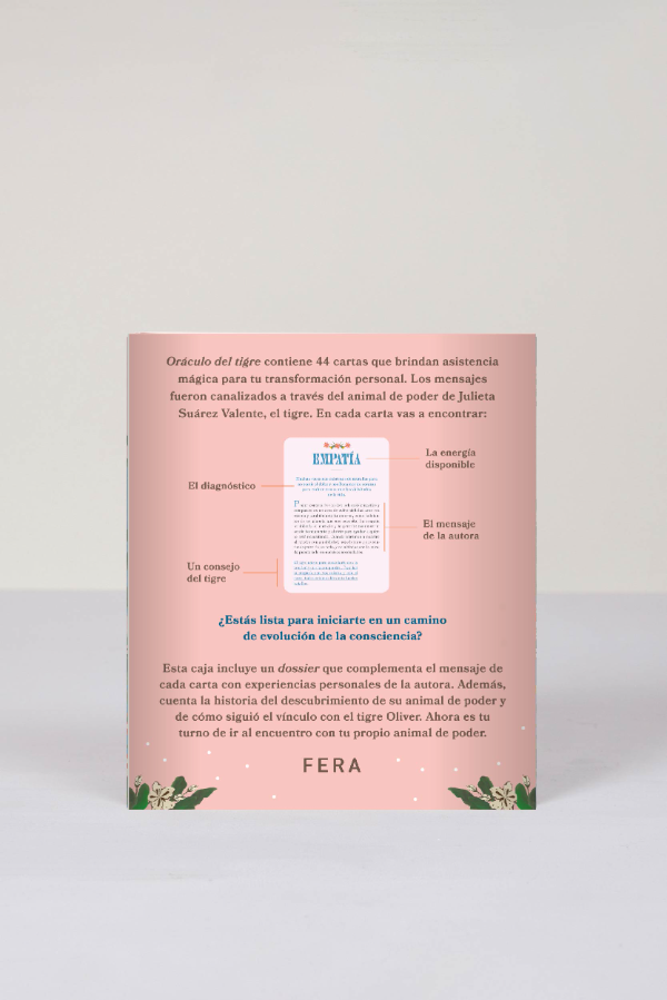 Este oráculo se compone de 44 cartas para la transformación personal. Fueron mensajes que canalizó Julieta Suárez Valente, astróloga y tarotista a través del tigre Oliver, su animal de poder. Estos mensajes no quedaron en meras palabras : Julieta las ha experimentado en cuerpo y alma a lo largo de todo su camino. En el dossier encontrarás ejemplos personales, anécdotas y confesiones relacionadas a cada una de las 44 propuestas de las cartas.