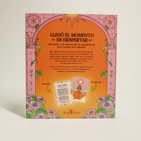 La intención de este oráculo es ofrecerte una brújula espiritual que te recuerde tu conexión con el universo y con todo lo que te rodea. Acá encontrarás mensajes inspirados en la naturaleza, los animales y la propia energía vital que recorre todo ser vivo. Con cada una de estas 45 cartas, te invitamos a observar tu entorno, abrazar las lecciones del pasado y estar abierta a las oportunidades que están por venir.